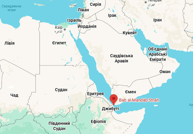 Баб-ель-Мандебська протока. Джерело: карти Google