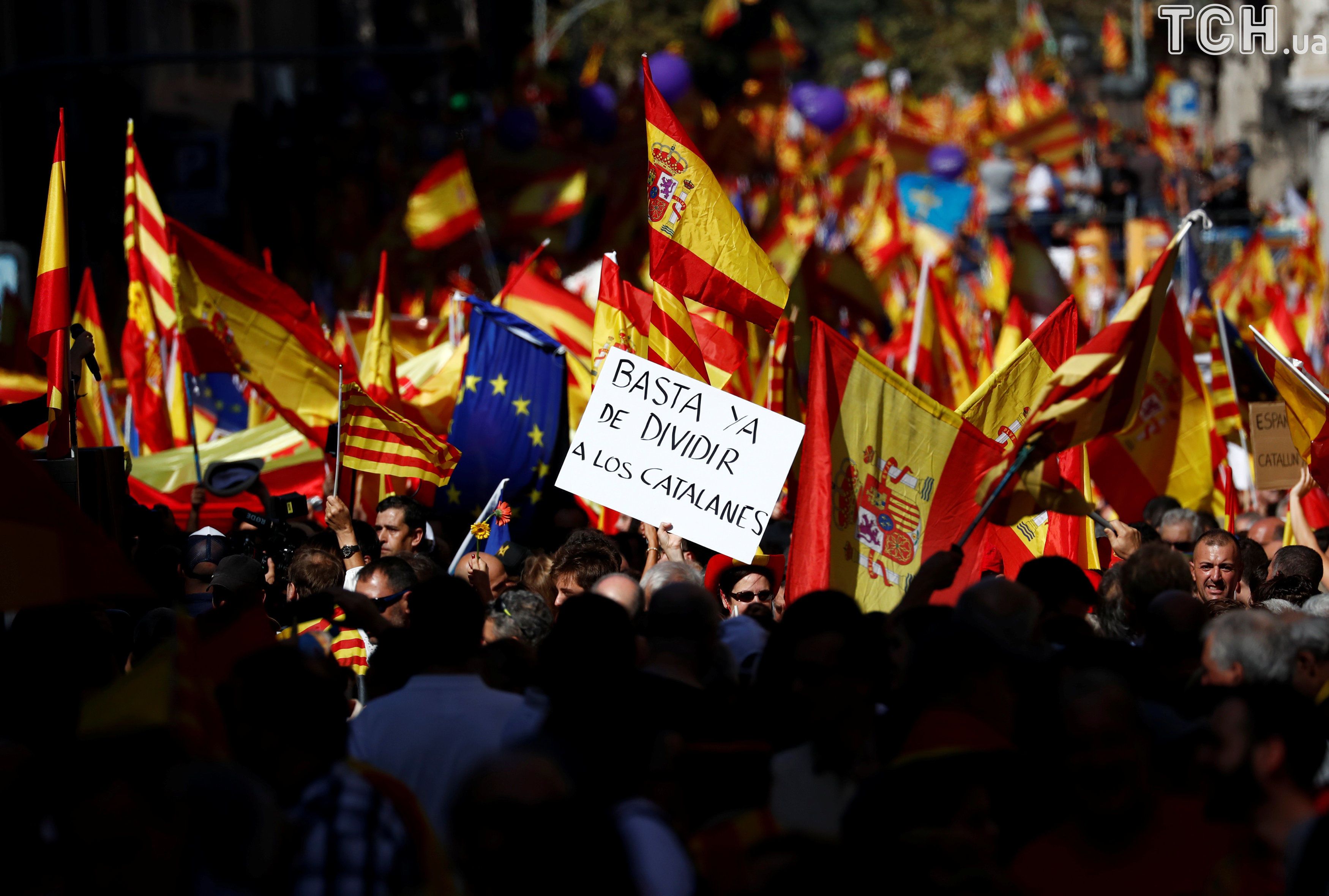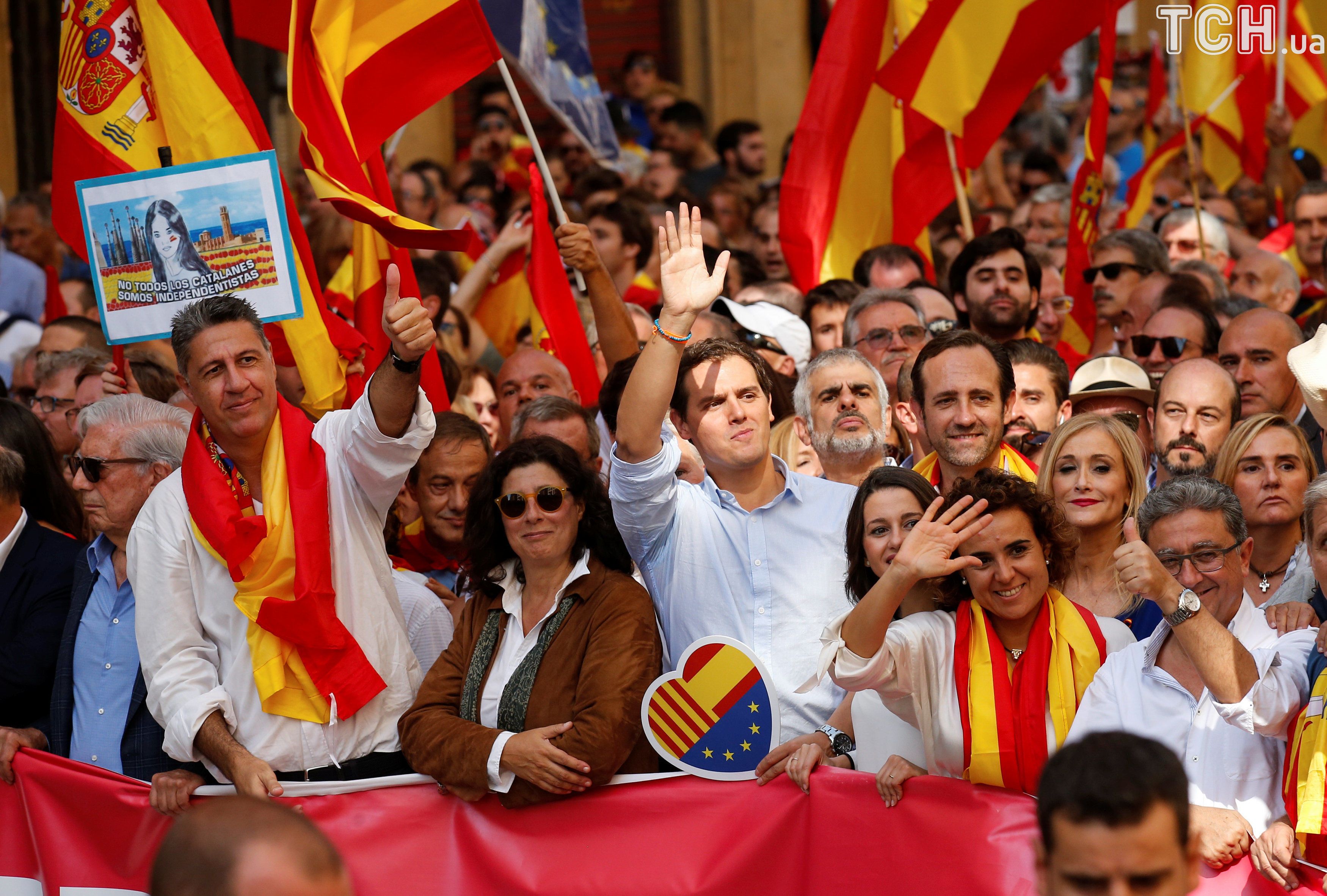У центрі Барселони тисячі людей вийшли на акцію проти незалежності Каталонії від Іспанії..