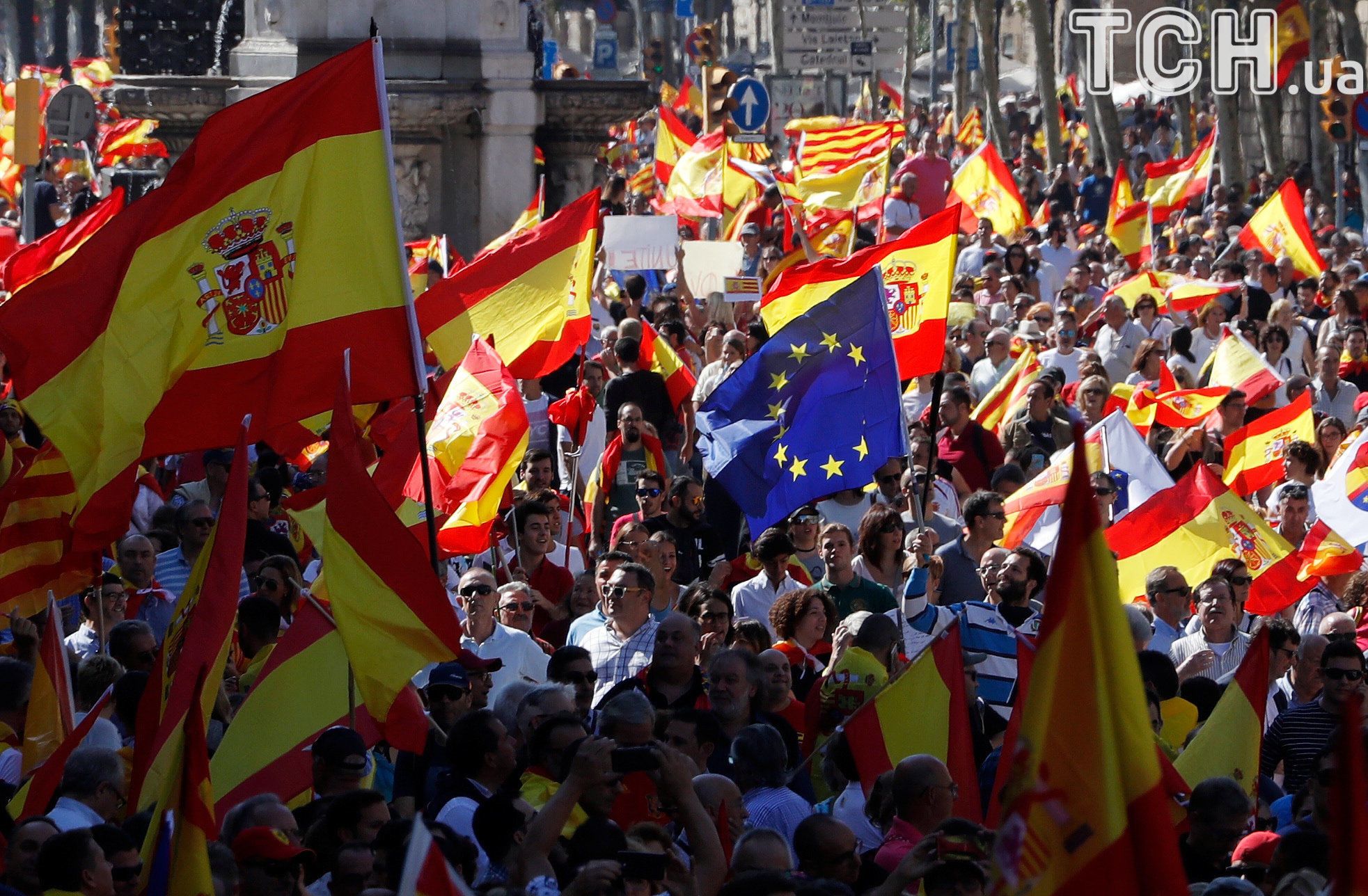 "Каталонія - це Іспанія". У Барселоні тисячі людей вийшли протестувати проти незалежності регіону