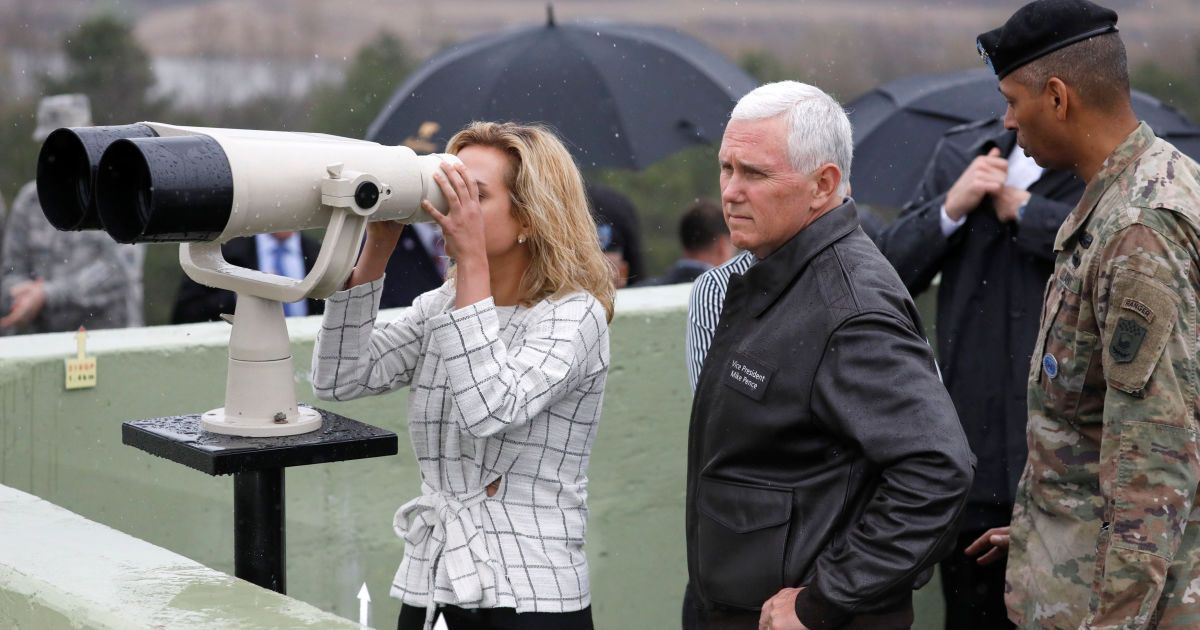 Пенс оглядає демілітаризовану зону між Південною Кореєю і КНДР / © Reuters