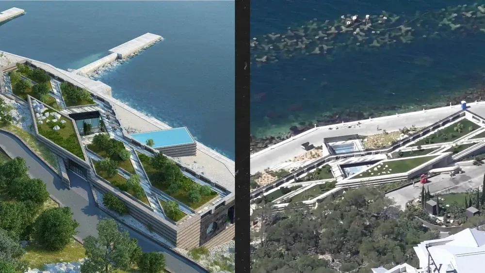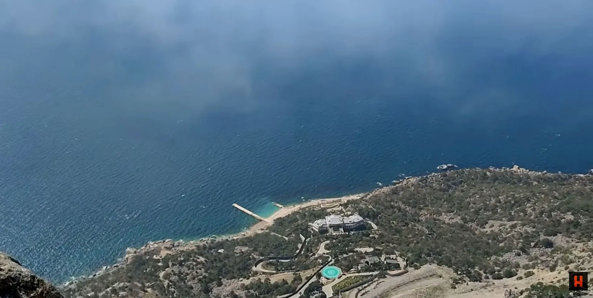 «Спочатку на місці цього палацу була будівля пансіонату „Мис Айя“. Але потім місце сподобалося Віктору Януковичу, який все там зламав, вирубав реліктові дерева і почав будувати собі літню дачу. Після того, як Путін у 2014 році анексував Крим, майно у Януковича відібрали і передали у державну власність», — пишуть розслідувачі. І зазначають, що тепер тут справжній палац.