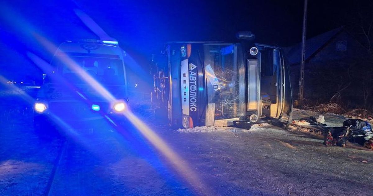 "За попередніми даними, водій автобуса Setra не впорався з керуванням на повороті і це призвело до того, що транспортний засіб перекинувся", - повідомила поліцейська.