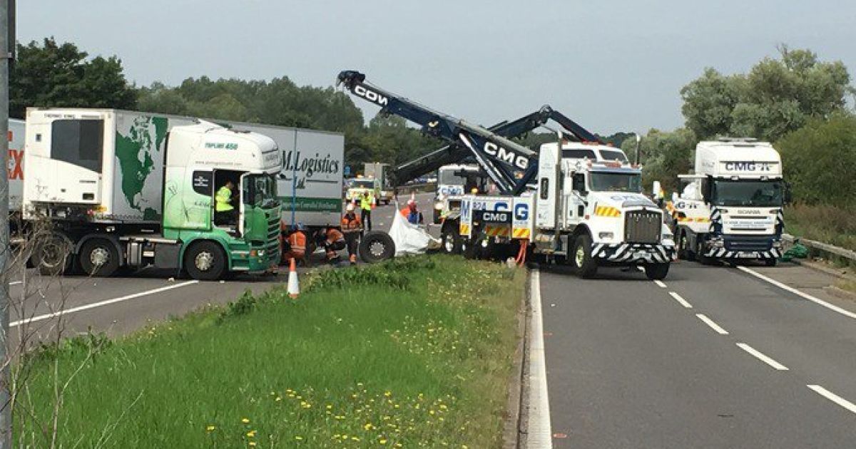 У Великій Британії на трасі М1 поблизу Ньюпорт-Пагнелл зіткнулися дві вантажівки та мікроавтобус.