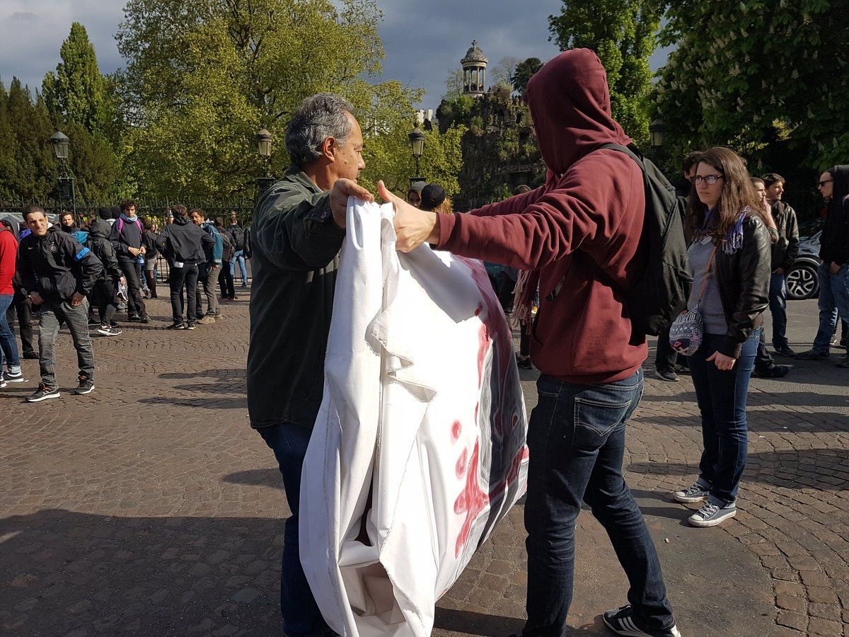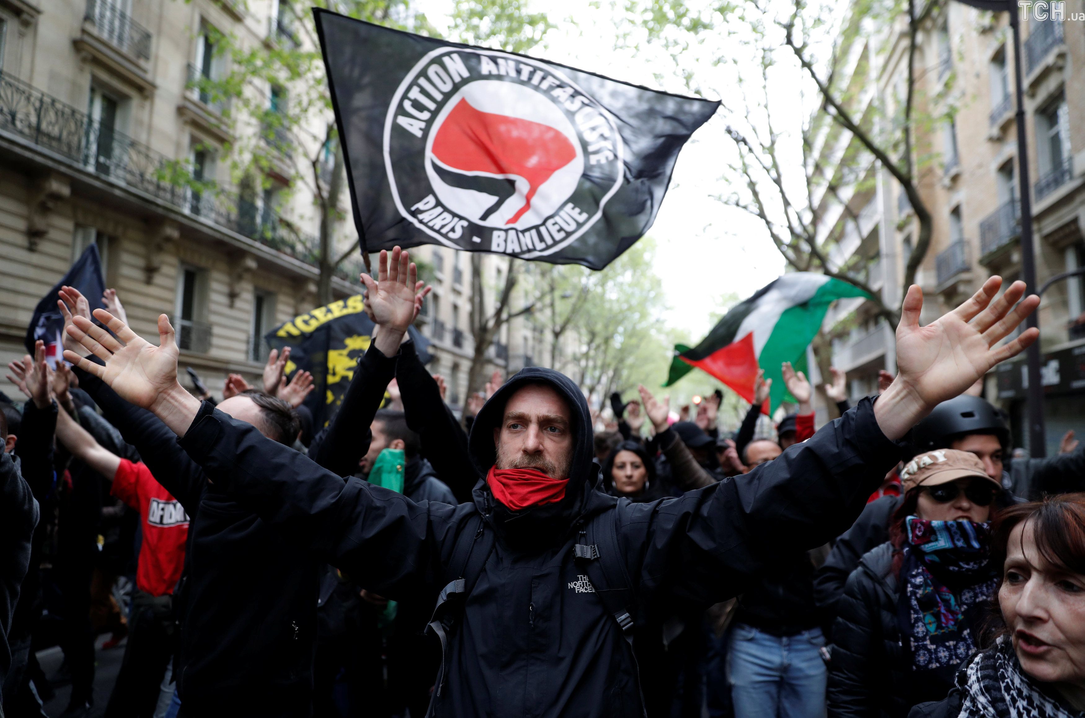 Акція проти запланованого на понеділок, 17 квітня, мітингу прихильників прокремлівського кандидата в президенти Франції Марін Ле Пен на арені "Зеніт" в 19-му окрузі міста, завершилася сутичками.