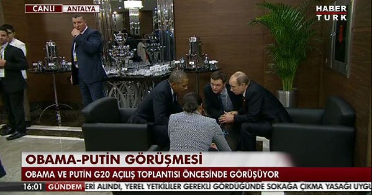 Раніше повідомлялося, що президенти США Барак Обама і Росії Володимир Путін поспілкувалися на полях саміту Великої двадцятки у турецькій Антальї. журналісти заскочили президентів під час бесіди біля столика із кавою. Офіційні представники Сполучених Штатів повідомили, що Обама та Путін провели переговори щодо Сирії.