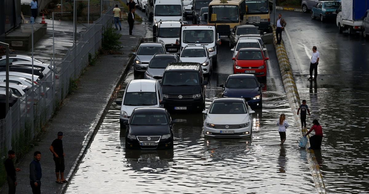Турецький Стамбул пішов під воду: у місті практично паралізовано рух, затопило і вулиці, і метро, а автомобілі пересуваються вплав. Аби затопити 15-мільйонний мегаполіс, знадобилося лише півтори години сильних злив, ідеться в сюжеті ТСН.19:30.