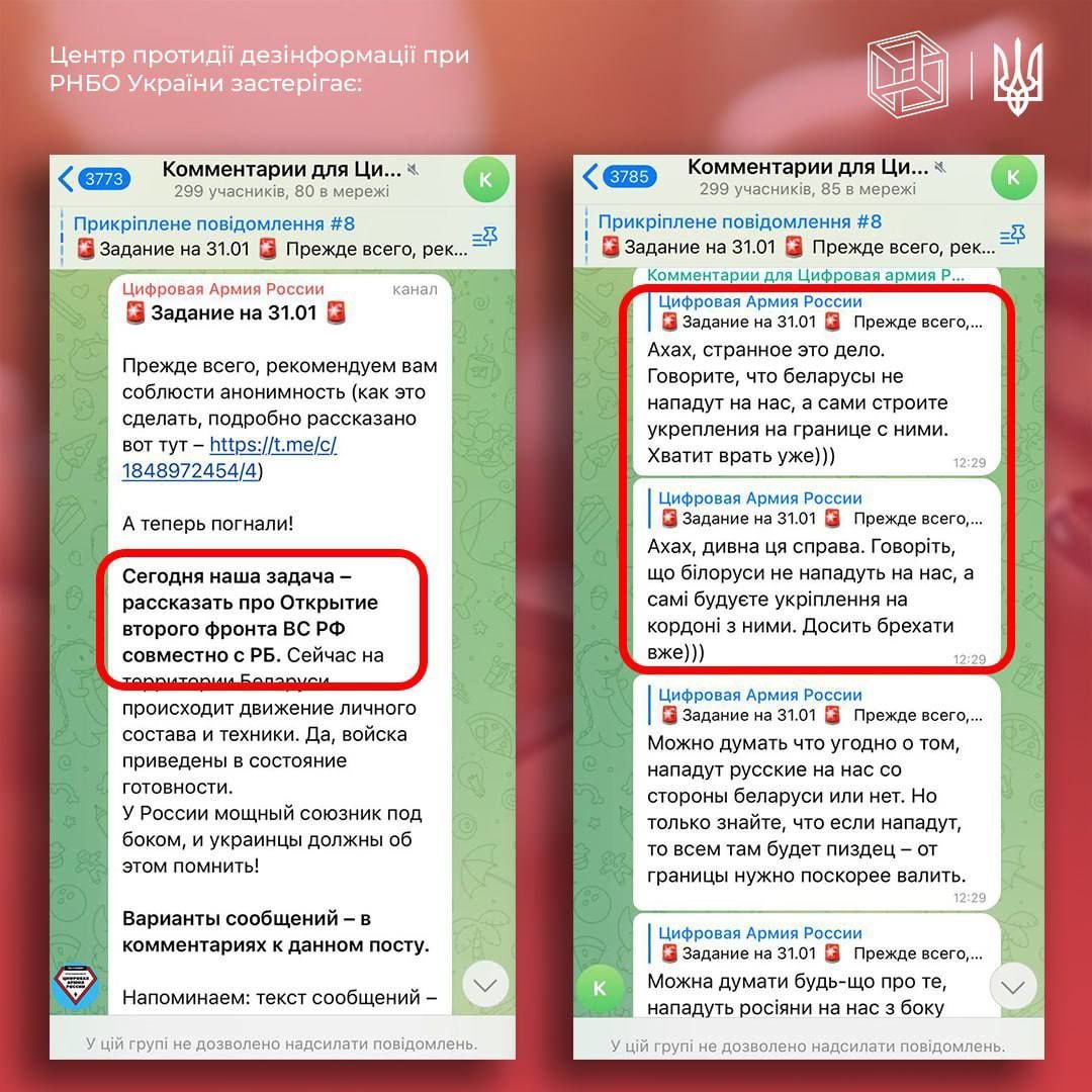 "Автори каналів закликають населення РФ поширювати коментарі під публікаціями українських каналів, які дискредитують українську владу та поширюють паніку серед українців", - повідомляє ЦПД.