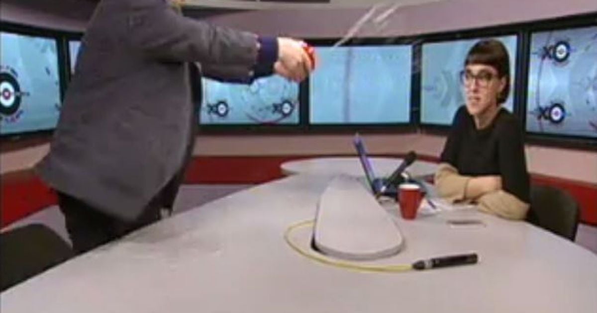Розгублена ведуча вибачилася перед глядачами за поведінку письменника, заявила, що він "трохи погарячкував", і продовжила вести ефір.