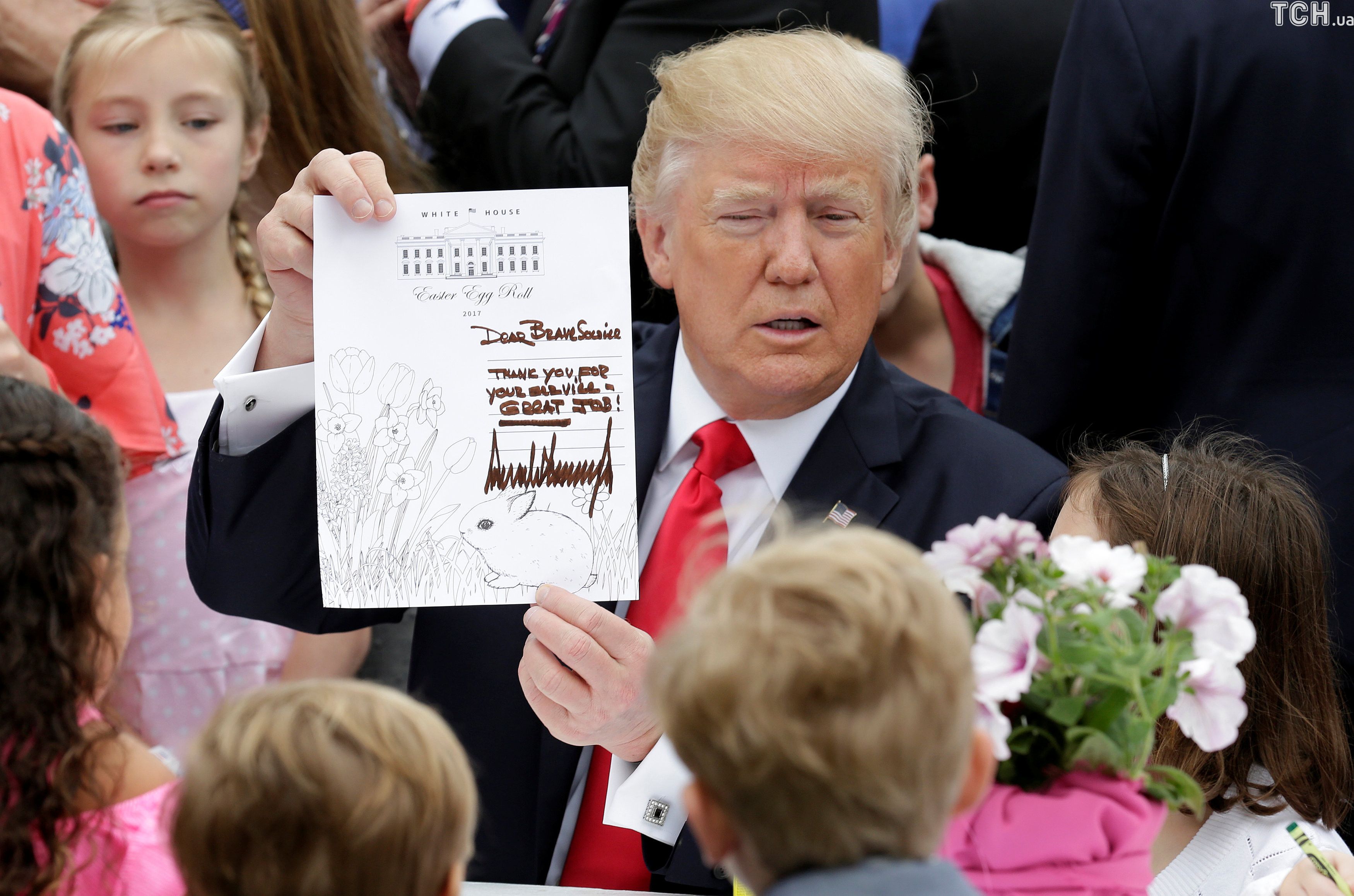 На фотографії також написане привітання "З Днем народження нашу першу леді, Меланію" та сьогоднішня дата.