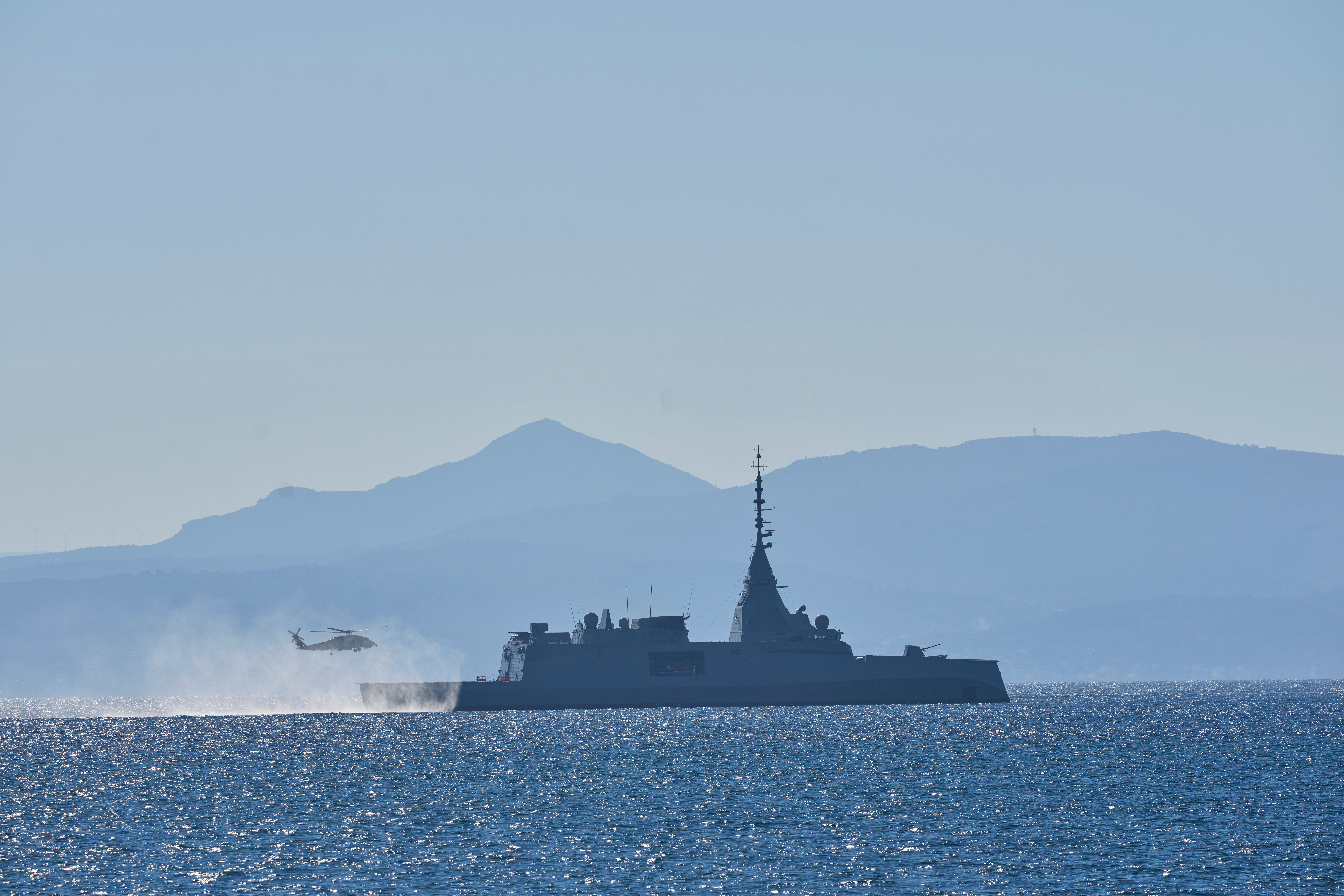 Корабель, оснащений системою Aegis, забезпечуватиме повітряне прикриття та допоможе з можливою евакуацією цивільних разом із французьким авіаносцем «Шарль де Голль» і грецьким флотом.