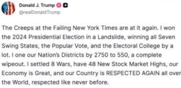 Президент США Дональд Трамп опублікував різку заяву, звинувативши The New York Times у дезінформації щодо його стану здоров’я та ознак втоми.