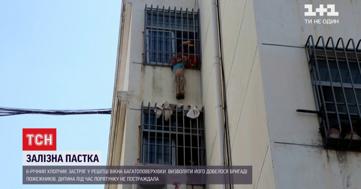 Ноги дитини звисали з вікна квартири на п'ятому поверсі. Як саме він спромігся застрягти у такій позі поміж прутів, невідомо. Аби врятувати малюка, довелося викликати бригаду пожежників. Надзвичайники розділилися на дві групи. Одна разом із батьком хлопчика тримали його з вікна квартири. Інша з вулиці страхувала за допомогою підйомного крану.