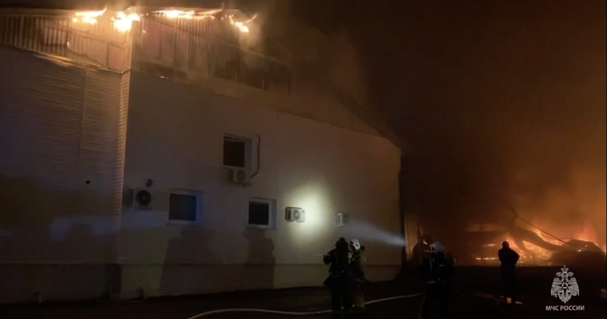 За їхньою інформацією, наразі горять уже дві будівлі — вогонь перекинувся і на склад.