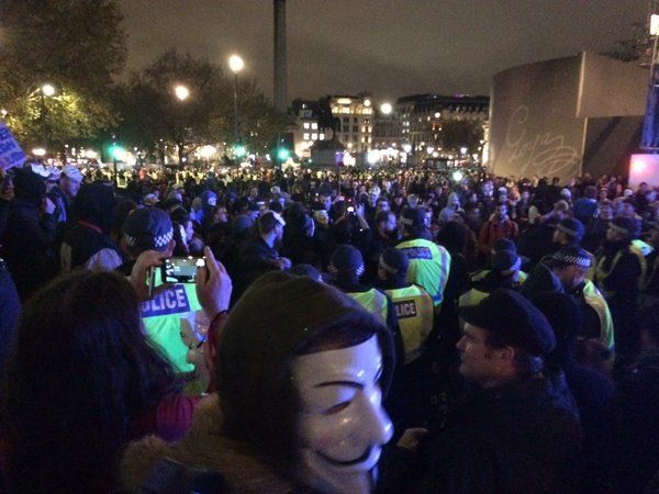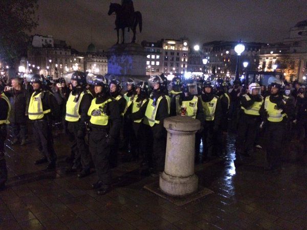 Проти активістів були мобілізовані сили поліції, в тому числі кінної. Зіткнення прокотилися по всьому центру Лондона. Повідомляється як мінімум про трьох затриманих.