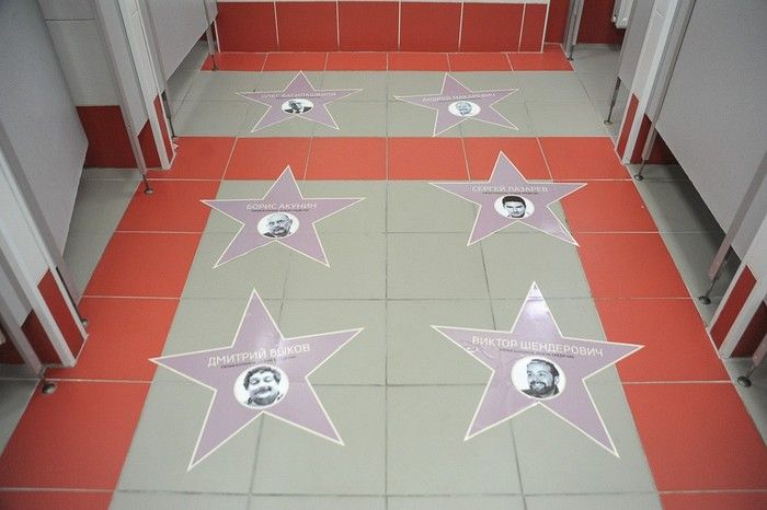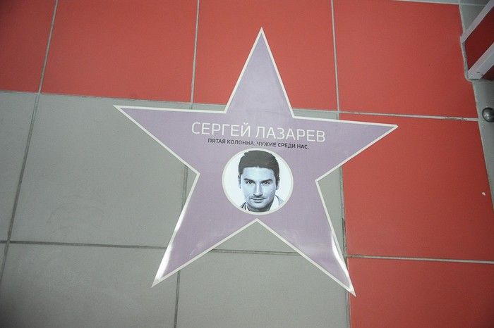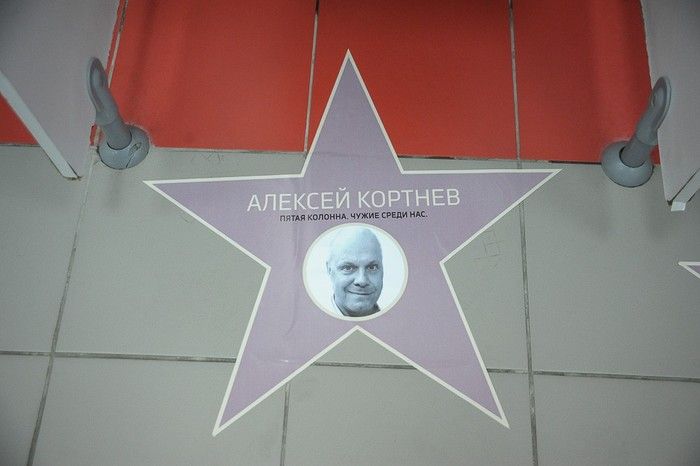 Серед зірок, зображеннями яких "прикрасили" підлогу туалету – Сергій Лазарєв, Олексій Кортнєв, Юрій Шевчук, Борис Акунін, Віктор Шендерович, Олег Басілашвілі та інші. Кожне фото підписане так – "п'ята колона. Чужі серед нас".