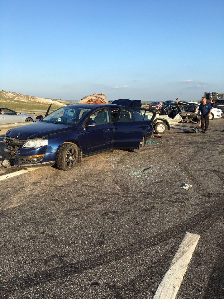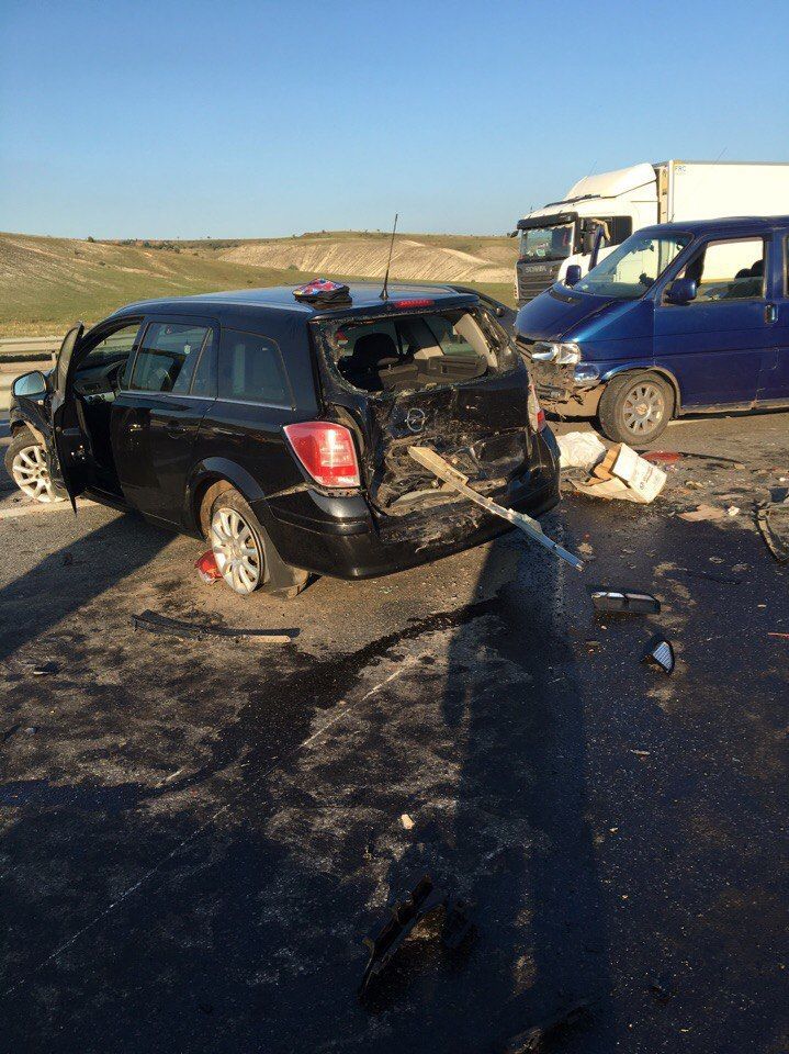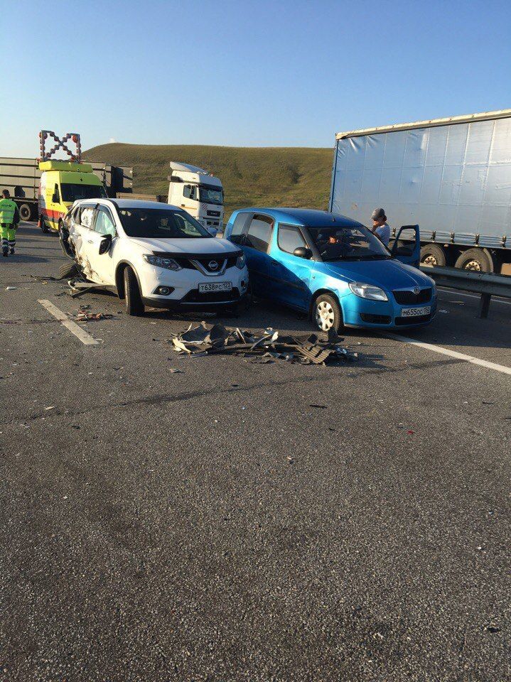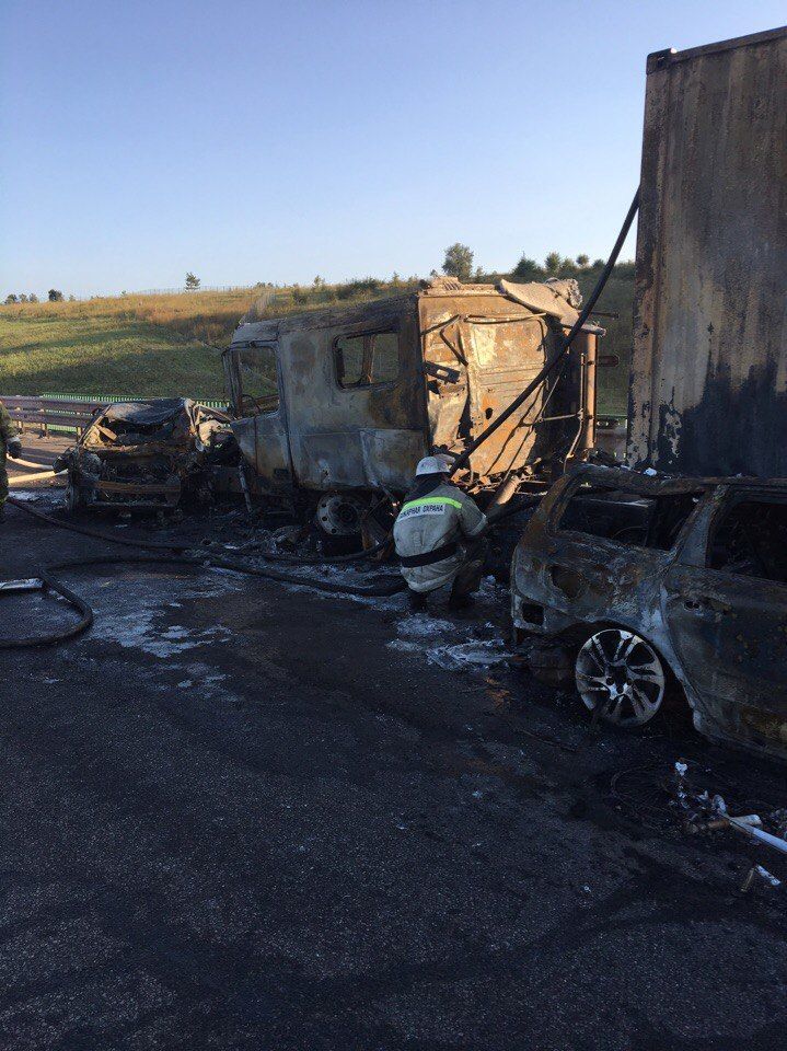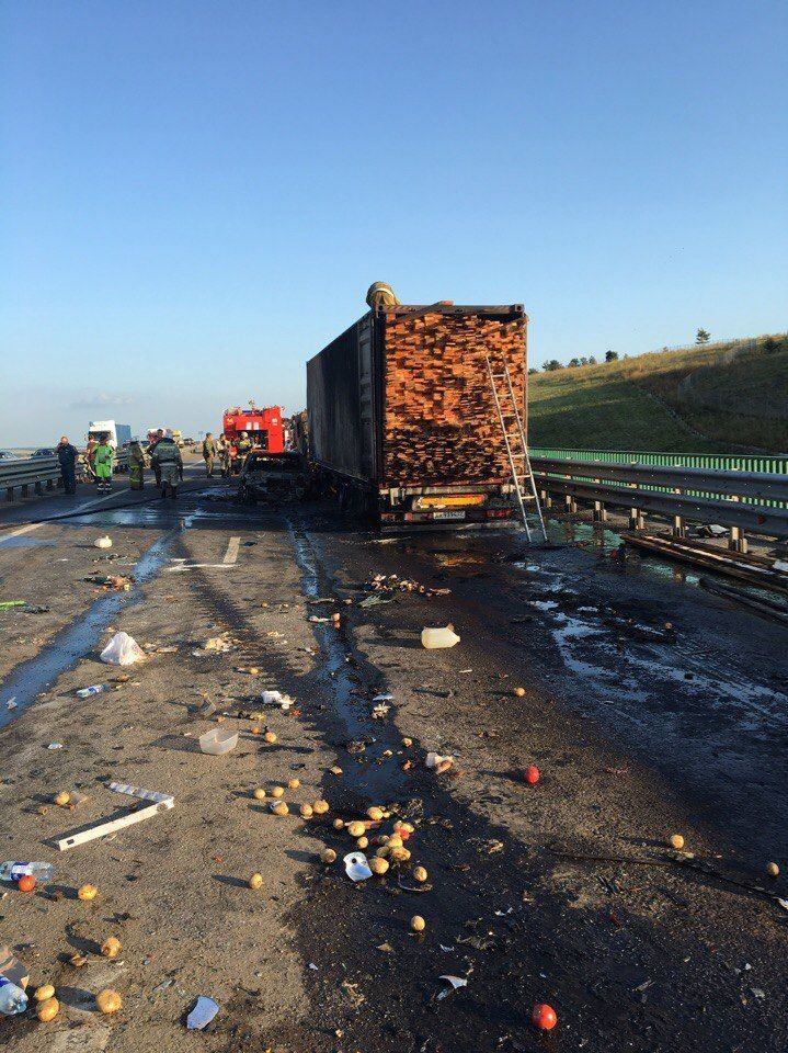 За даними російських правоохоронців, 35-річний житель Краснодарського краю за кермом вантажівки Fredliner зіткнувся з автомобілями, що рухалися в попутному напрямку. Внаслідок аварії постраждали четверо людей, серед яких і 5-річна дівчинка. 30 автомобілів отримали механічні пошкодження, чотири з них загорілися.