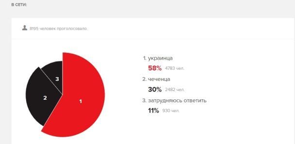 У Мережі проголосувало більше 8 тисяч користувачів і 58% з них вказали, що побоюються зустріти українця, 30% - чеченця, у 11% були труднощі з відповіддю.