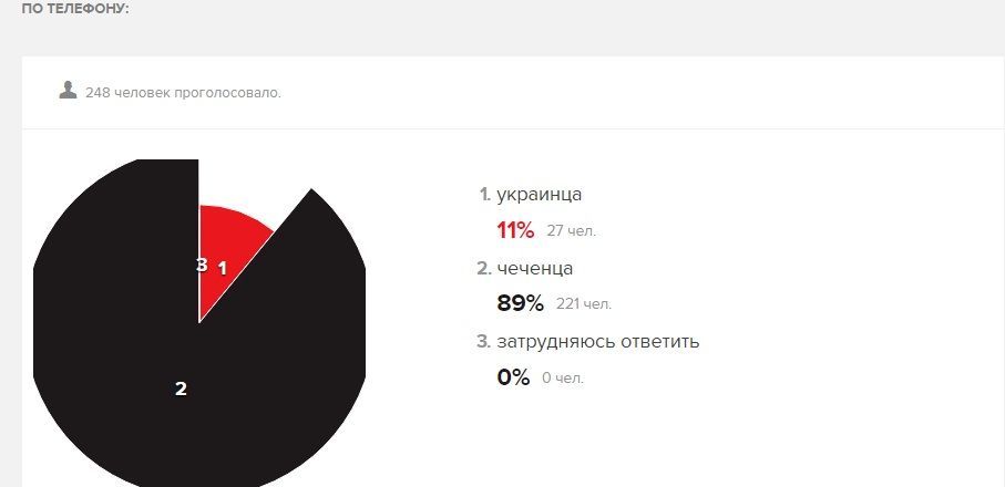 89% користувачів, які голосували з телефону, вказали, що побоюються чеченця, 11% - українця. Всього з мобільних пристроїв проголосували майже 250 чоловік.