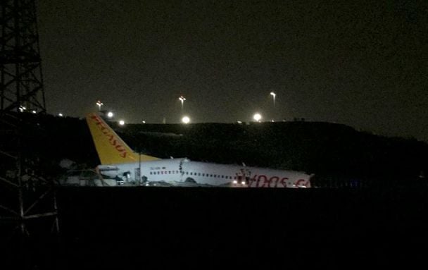 У стамбульському міжнародному аеропорту імені Сабіхи Гекчен розбився борт турецького авіаперевізника Pegasus. Літак викотився за межі злітно-посадкової смуги і розвалився на декілька частин, повідомляє aa.com.tr.