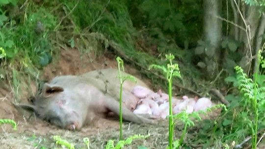 Зоозахисники припустили, що вагітна свиня інстинктивно втекла народжувати в безпечне місце, обравши для цього розташований поруч ліс неподалік від ферми.