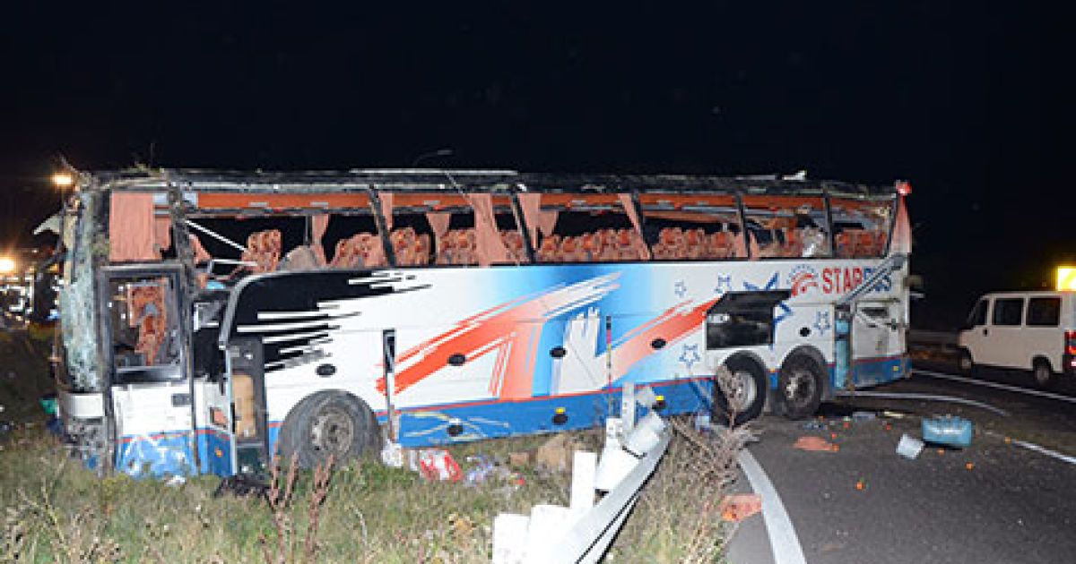 Повідомляється, що автобус, в якому перебувало 14 пасажирів, із невідомих причин звернув із шосе, пробив огорожу та з'їхав у кювет.