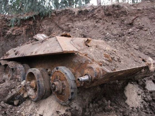 В ізраїльському місті Холон будівельники, копаючи котлован для фундаменту, знайшли під шаром ґрунту танк Т-34. Він був похований під землею без башти та гусениць.