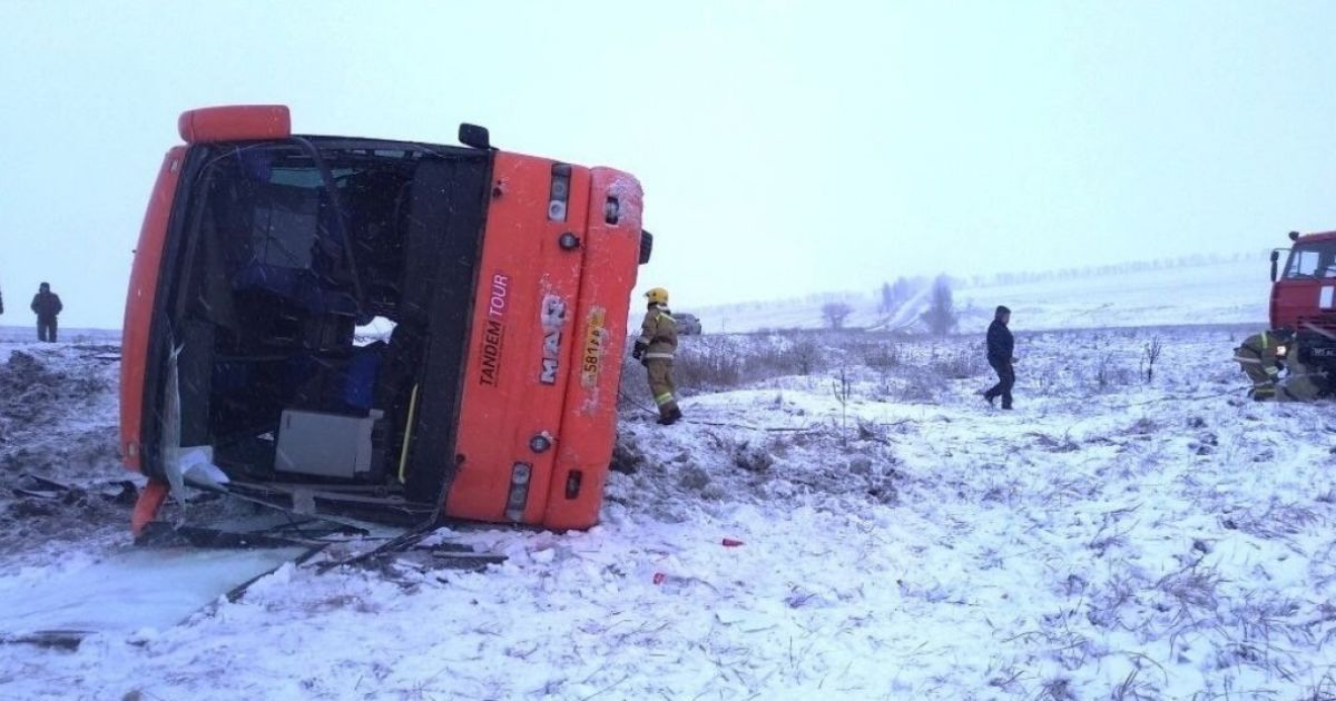 В ОРДЛО вилетів із траси і перекинувся пасажирський автобус: є жертви, багато постраждалих
