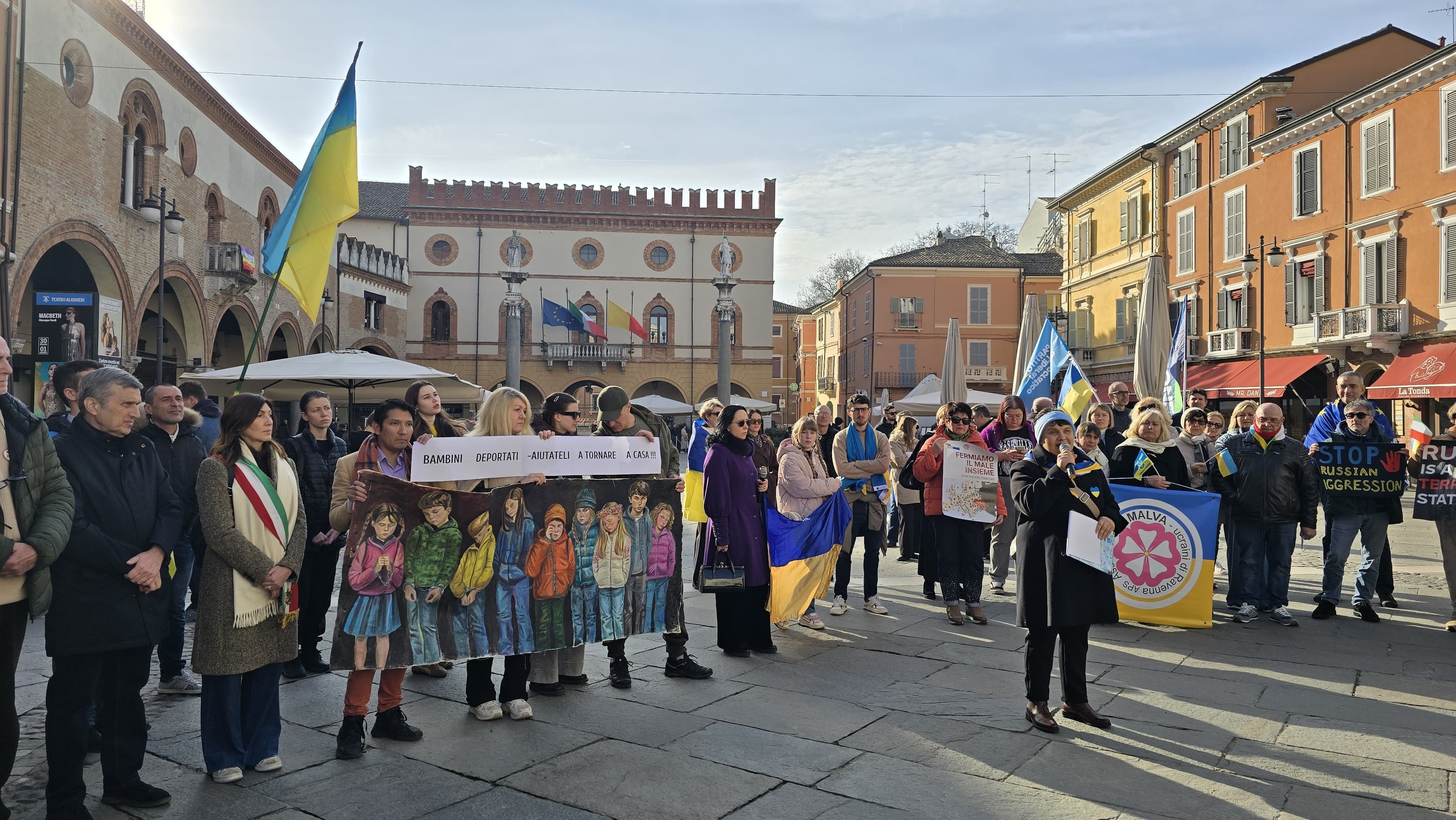 У Равенні асоціація «Malva» підготувала триденну програму: 22 лютого відбулася масова маніфестація, 24 лютого заплановано показ документального фільму «2000 метрів до Андріївки» та флешмоб «Світло для України» біля міського театру Аліг’єрі.