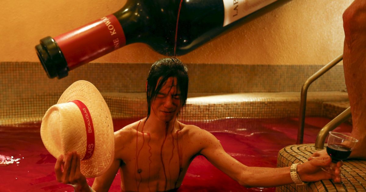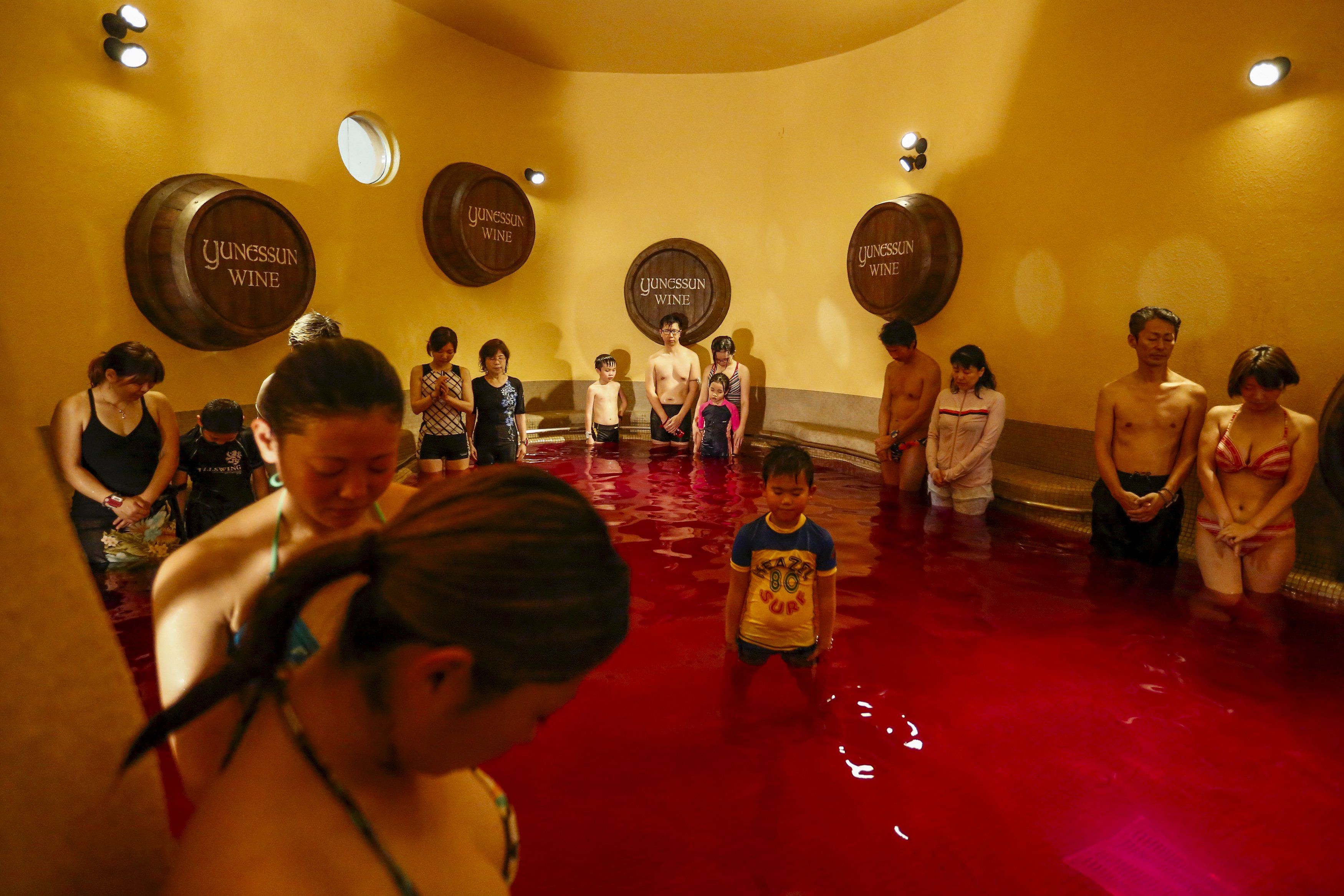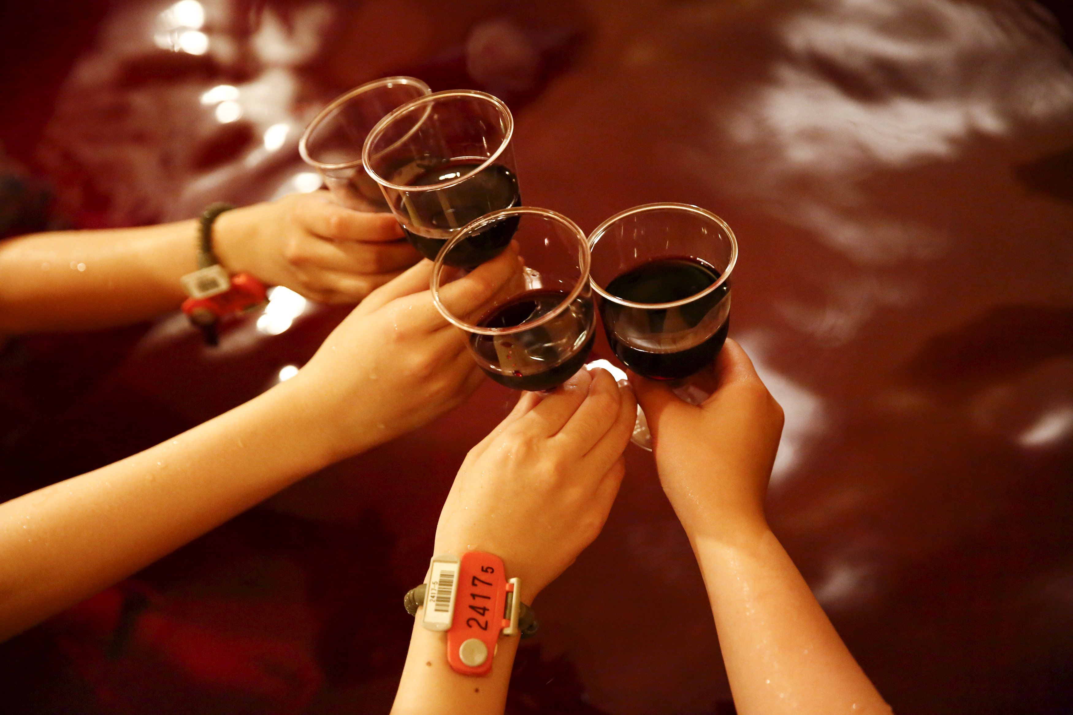 Видовищне святкування дня божоле у Японії: "криваві" ванни та ріки червоного вина
