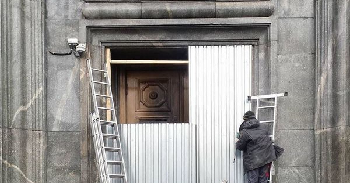 Після того, як епатажний пітерський митець Павленський влаштував вогняний перформанс центрального входу, його забарикадували листами заліза.