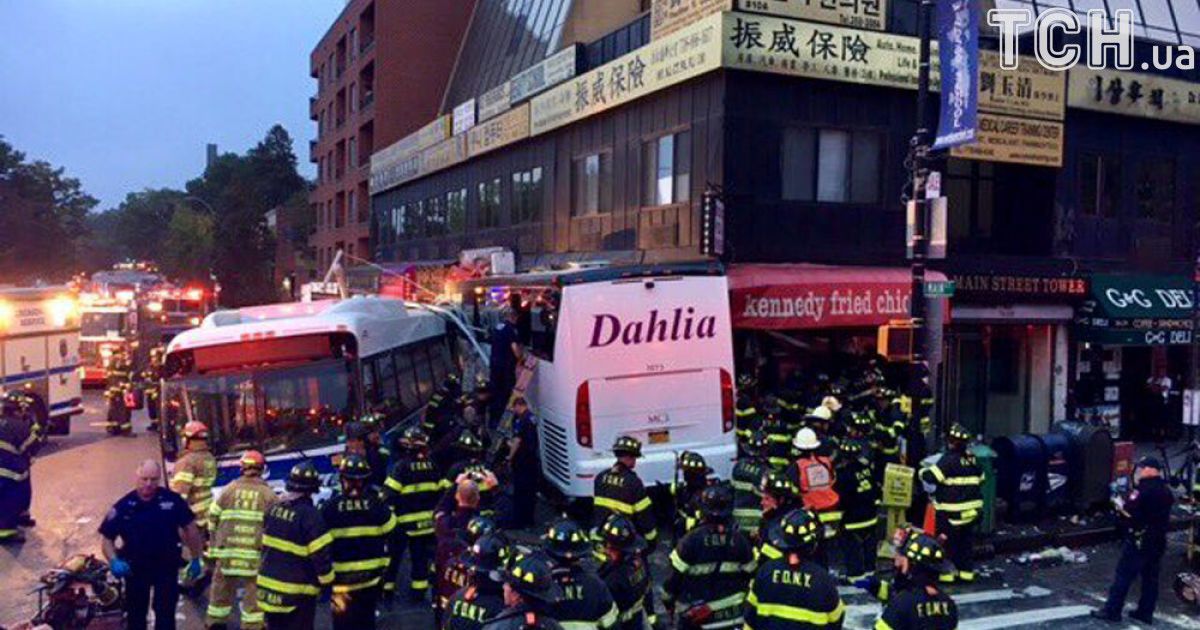Обидва автобуси рухалися по Нортен-бульвару в Квінсі, коли міський автобус з 15 пасажирами спробував звернути праворуч. Кількість пасажирів туристичного автобуса поки невідома. Однією з причин зіткнення, в результаті якого один з автобусів врізався в будівлю, влада назвала швидкість.