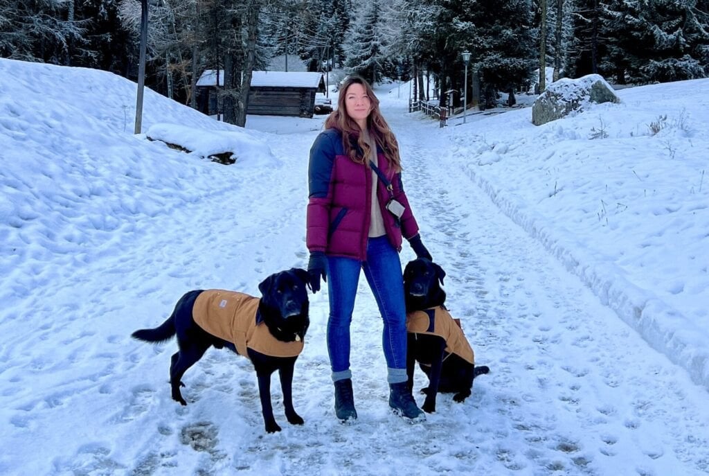 Трейсі гуляє з Ведмедем та Уомблом у засніженій гірській місцевості Фото: Jam Press/Rosely Group