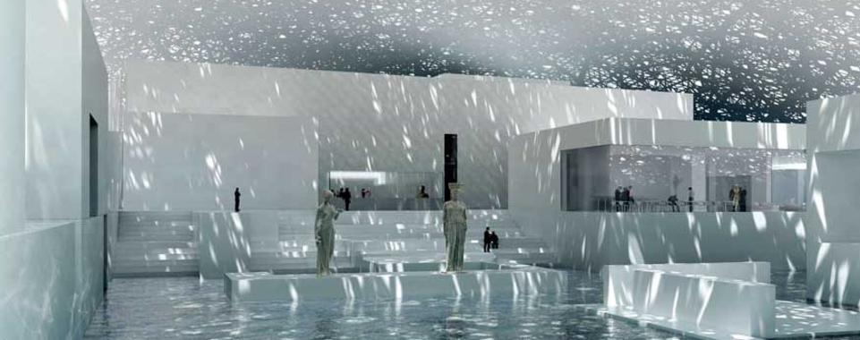 Будівля музею розташована неподалік від берегу міста Абу-Дабі. Футуристичний комплекс музею "Лувр Абу-Дабі" побудували просто в морі за проектом французького архітектора Жана Нувеля. Покрівля музею - це сріблястий купол, що складається з тисяч зірок. Завдяки такій незвичній будові до будівлі буде заломлюватись світло, створюючи ефект "світлового дощу" з сонячних променів.