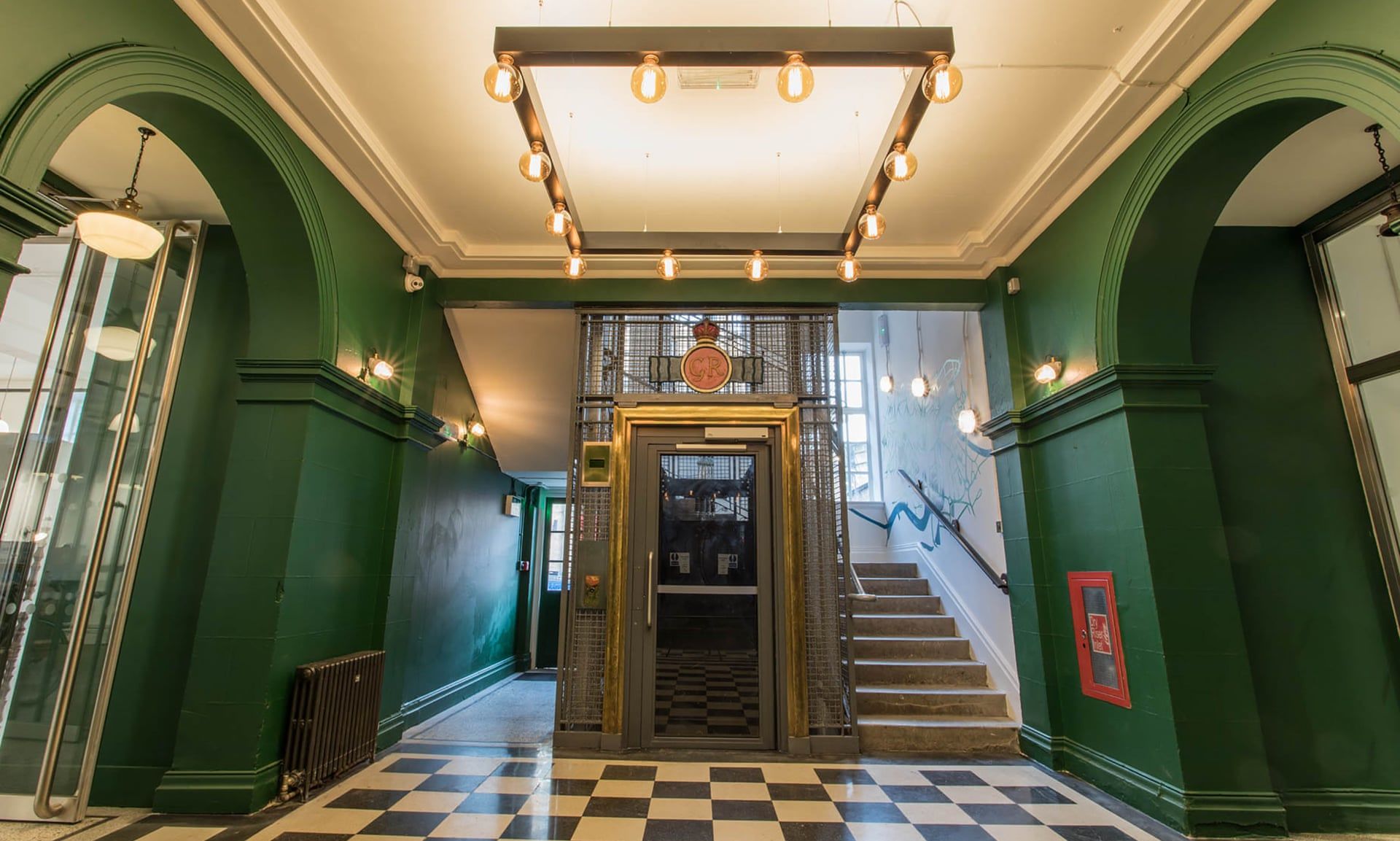 У фойє будівлі 1920 року є старий ліфт, стіни зеленого кольору, підлога з чорно-білим кахелем. Все це нагадує на сцену із фільму "Готель "Ґранд Будапешт“.