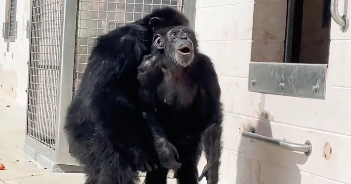 29-річна шимпанзе Ванілла, яка все життя просиділа в клітці, вперше побачила небо – зворушливе відео