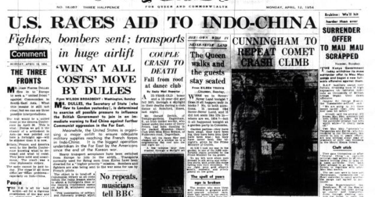 Війська США організують по повітрю доставку військових припасів французам в Індокитай (у той час йшла битва при Дьенбьенфу: в'єтнамці боролися за незалежність своєї країни);