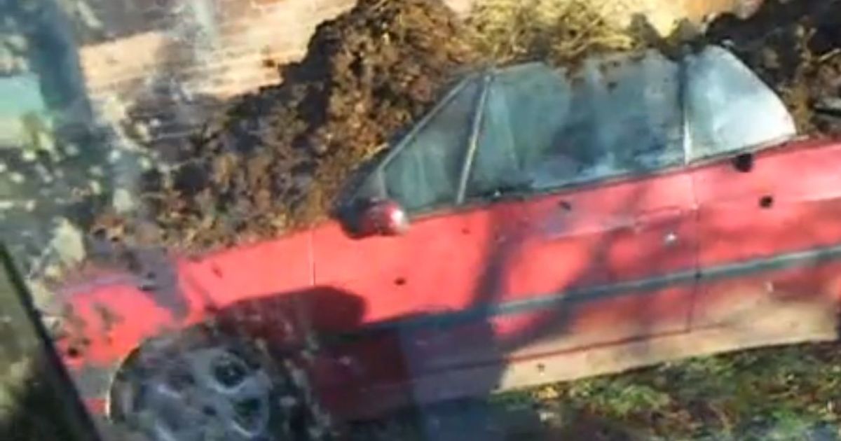 Чоловік засипав машину дружини кінським гноєм за зраду (відео)