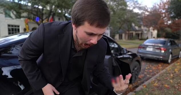 Минулого місяця американець Алек Райт планував зняти пам'ятні милі кадри, на яких він просить Енджел Гріффін стати його дружиною. Натомість спершу вдалося зафіксувати момент, коли знервований 22-річний хлопець із гучним "хрускотом" застряє мізинцем лівої руки в багажнику автомобіля, що змушує його хитатися від болю та стікати кров'ю.