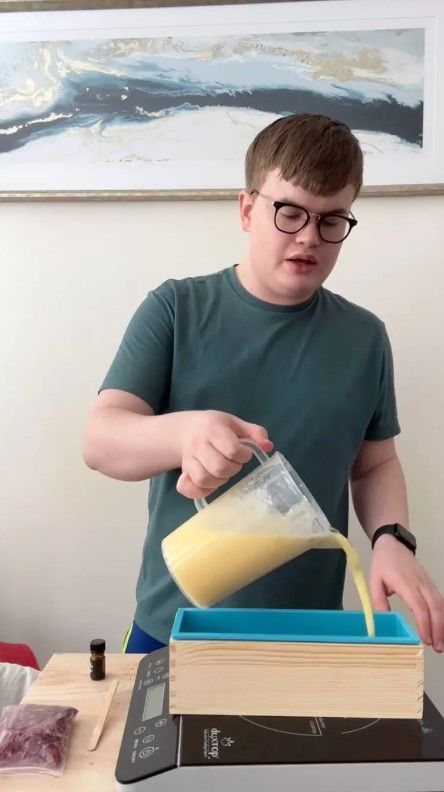 Потім Толппі переливає мило для тіла у прямокутну форму, а потім розрізає його на придатні для використання бруски.