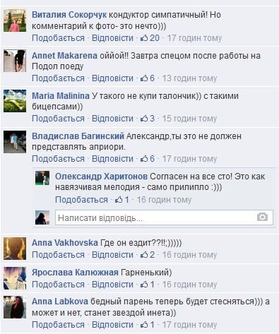 У пабліках соцмереж фото розлітається з блискавичною швидкістю. Наприклад, автори спільноти "Жити в Києві" зазначають, що кондуктор буквально "підкорив дівчат Києва".