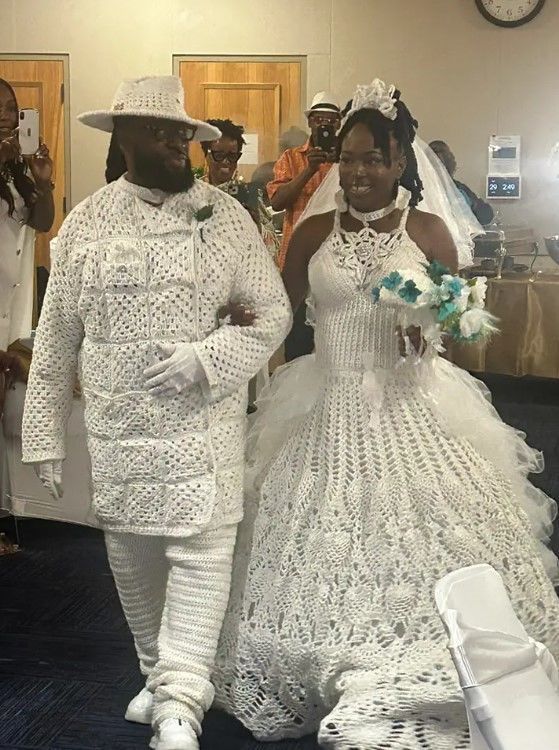 Наречена зв'язала гачком сукню і смокінг нареченого для їхнього весілля.