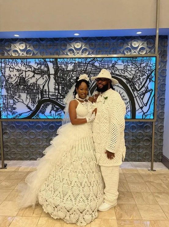 Наречена зв'язала гачком весільну сукню і смокінг нареченого: який вони мали вигляд (фото, відео)