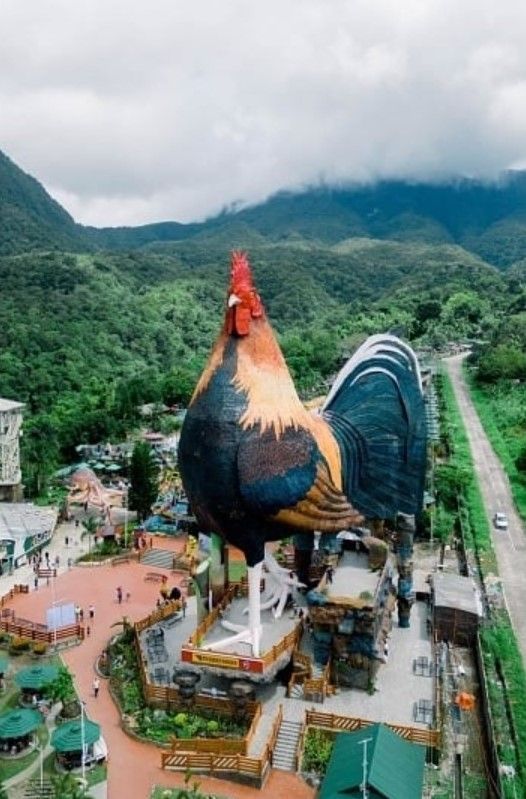 Готель Rooster на курорті Campuestohan Highland Resort заввишки 35 м – це неабияке видовище. Він не лише має форму домашнього птаха, але й насправді має вигляд як гігантський реалістичний півень, що домінує над усією територією своєю величною поставою. Рікардо Кано Гвапо Тан, директор курорту, розповів журналістам, що хотів створити щось, що привертає увагу, а також віддати данину місцевій культурі, величезною частиною якої є дичина. У Negros Occidental розведенням дичини займаються мільйони філіппінців, тож він сподівається, що деякі з них захочуть провести ніч в одному з 15 номерів нового готелю з кондиціонерами.