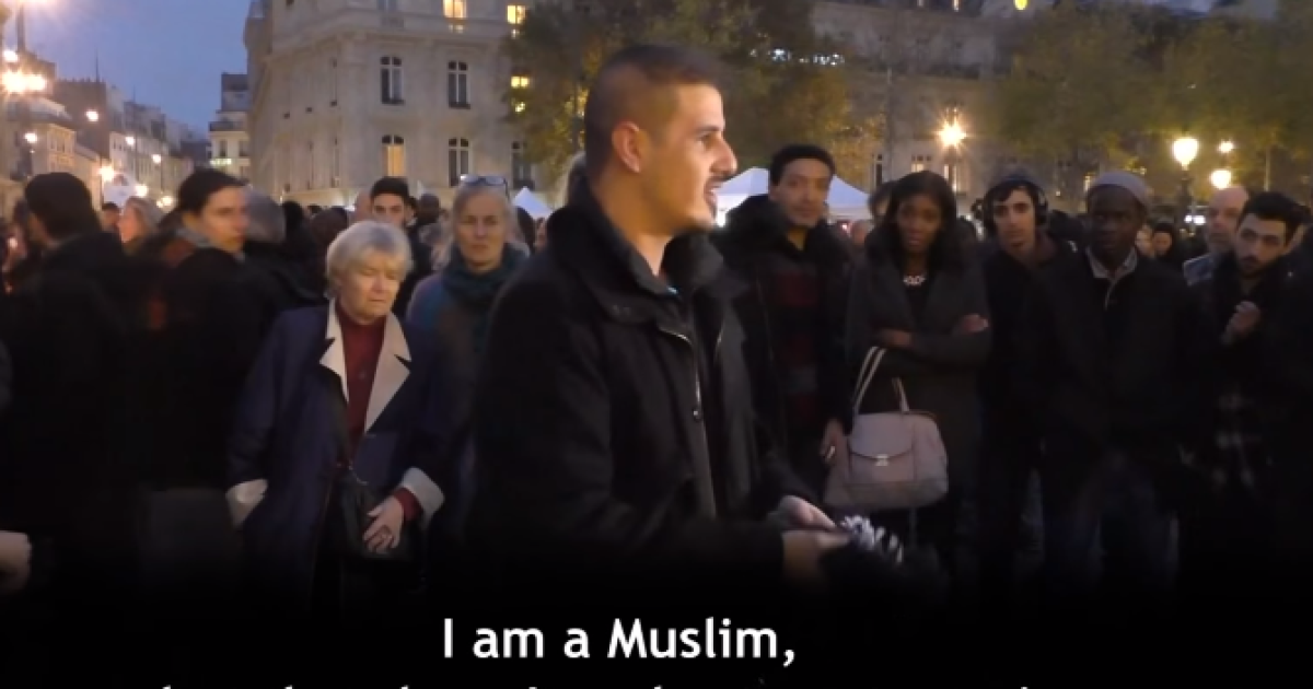 "Я хотів би подякувати усім, хто обняв мене. Я зробив це, щоб звернутися до кожного. Я- мусульманин, але це не робить мене терористом. Я ніколи нікого не вбивав. Я дуже співчуваю сім'ям загиблих. І я хочу сказати, що мусульманин – це не обов'язково терорист. Терорист – це людина, яка вбиває інших. Мусульманин ніколи такого не зробить – наша релігія цього не дозволяє".