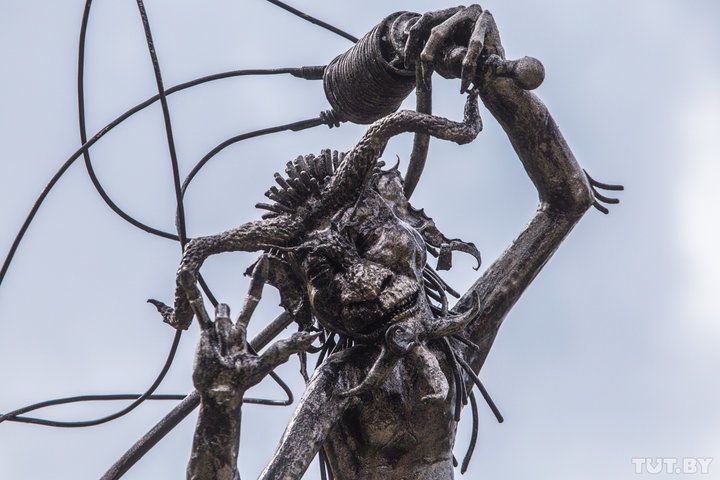 У кількох кілометрах від Мінська невідомий бізнесмен звів маєток, який прикрасив залізними фігурами чортів, черепами, а також руками, які стирчать з паркану, пише білоруське видання TUT.BY.