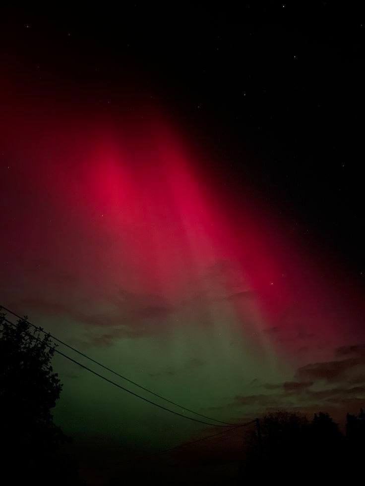Українці в різних регіонах почали масово публікувати фото й відео незвичного світіння в небі. На кадрах видно характерні для аврори відтінки — зелений, рожевий і місцями фіолетовий, а також розмиті світлові «хмари» або смуги над горизонтом.