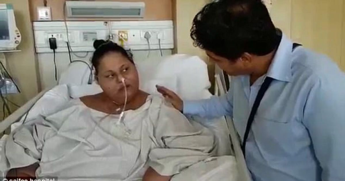 37-річна єгиптянка Еман Ахмед Абд ель-Аті до початку свого лікування в Індії важила майже півтонни. Однак процедури дозволили жінці втратити вагу. Наразі вона тепер може сісти, адже до цього могла тільки лежати через надмірну вагу, пише Daily Mail.
