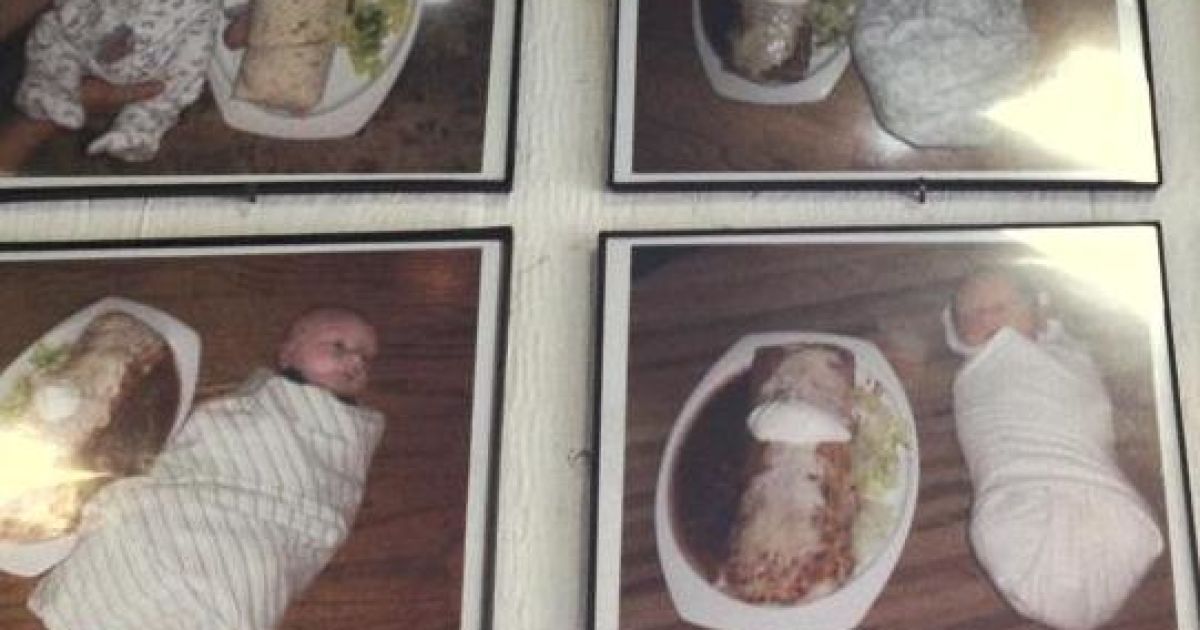 Ресторан мексиканської кухні в Сієтлі розмістив на своїх стінах фотографії, де немовлята в пелюшках лежать поряд із буріто, лаваш яких теж нагадує пелюшки.
