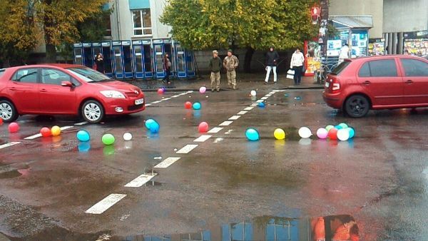 Невідомо, це зроблено випадково чи спеціально. Але останні повітряні кульки висипали два чоловіки. Через кульки утворився затор.
