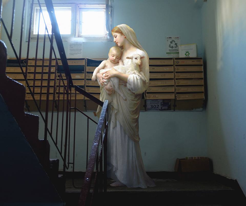 Роботи дизайнера з Києва Олексія Кондакова стали справжньою сенсацією серед провідних іноземних видань. У серії своїх колажів "Повсякденне життя богів" українець "поселив" античних героїв світового живопису у побутові пейзажі міста. Найбільше у своїх роботах Кондаков використовує контраст між місцями, яким надають перевагу маргінальні верстви населення та прекрасними героями давніх картин.